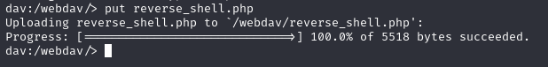 Cadaver is actually look-a-like SSH, not the same, but look-a-like, means we can upload, download, move and copy. By using put we can upload our reverse shell file